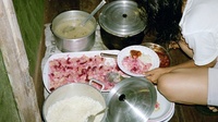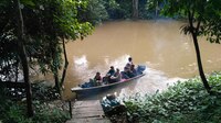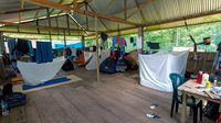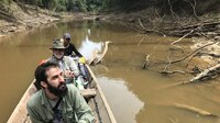 A second boat is loaded with enough food for three weeks in the rainforest – and of course Eckhard's expedition case.